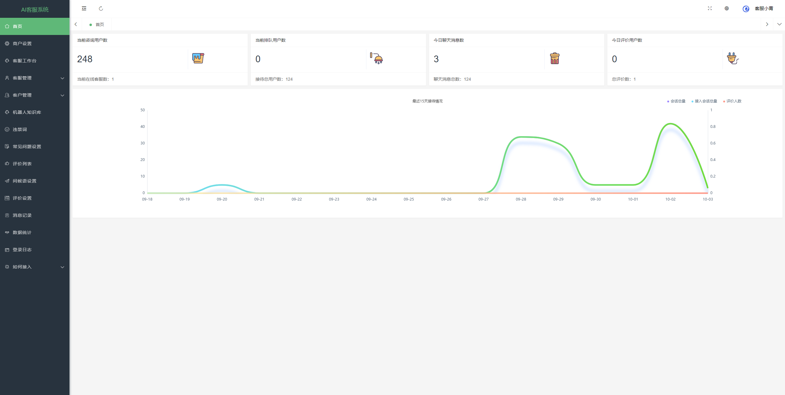 - 支持查看聊天记录、支持设置JS文件 方便对接、支持智能匹配客服 也支持指定客服