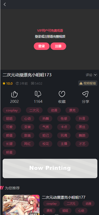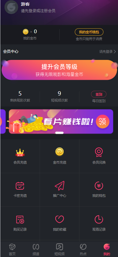 4. 新增短视频模块,短视频每日试看次数功能,开启后游客和默认会员限制次数,VIP会员则不限制次数