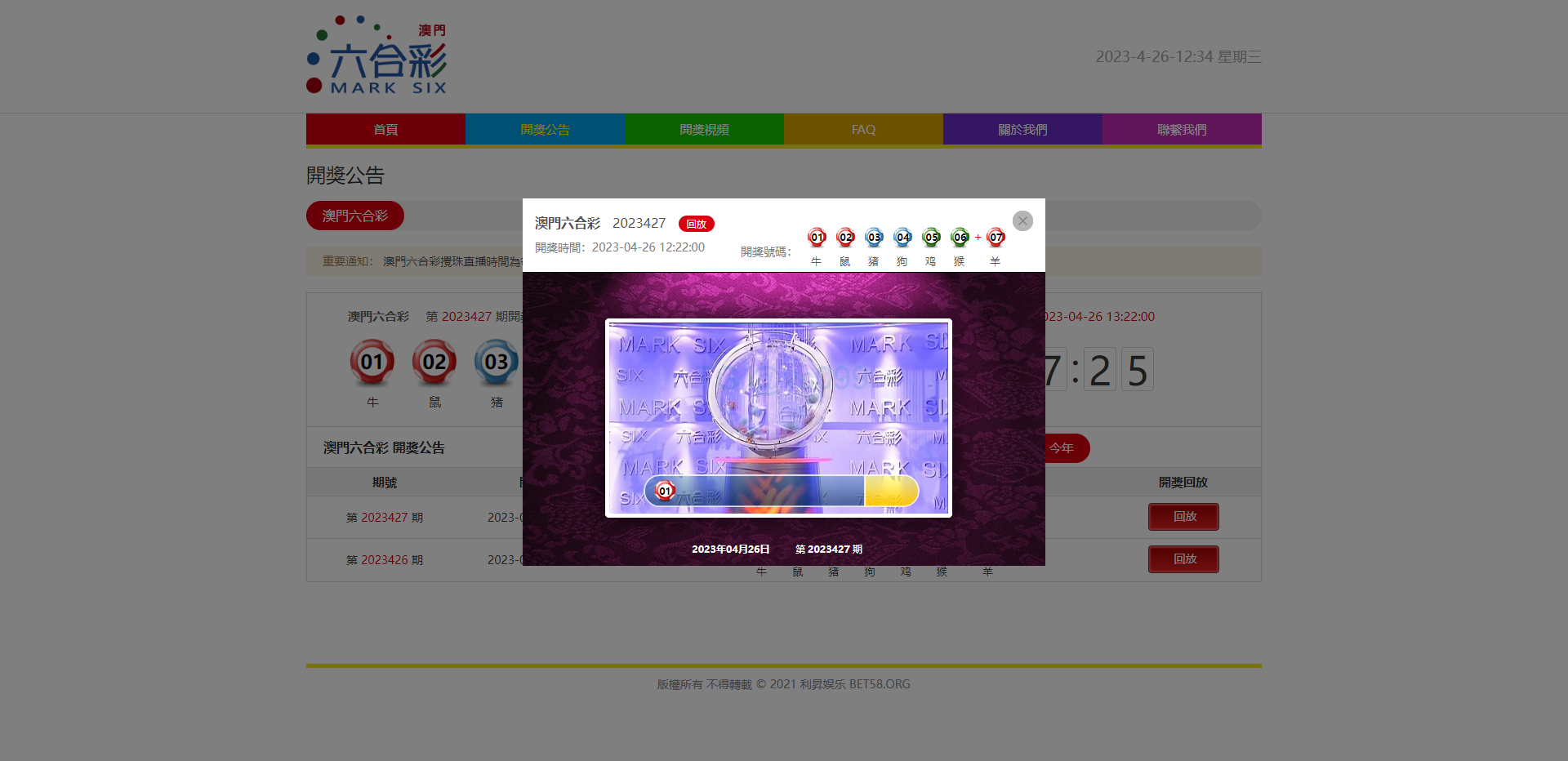 澳门六合彩开奖网/六合彩开奖系统/摇号视频