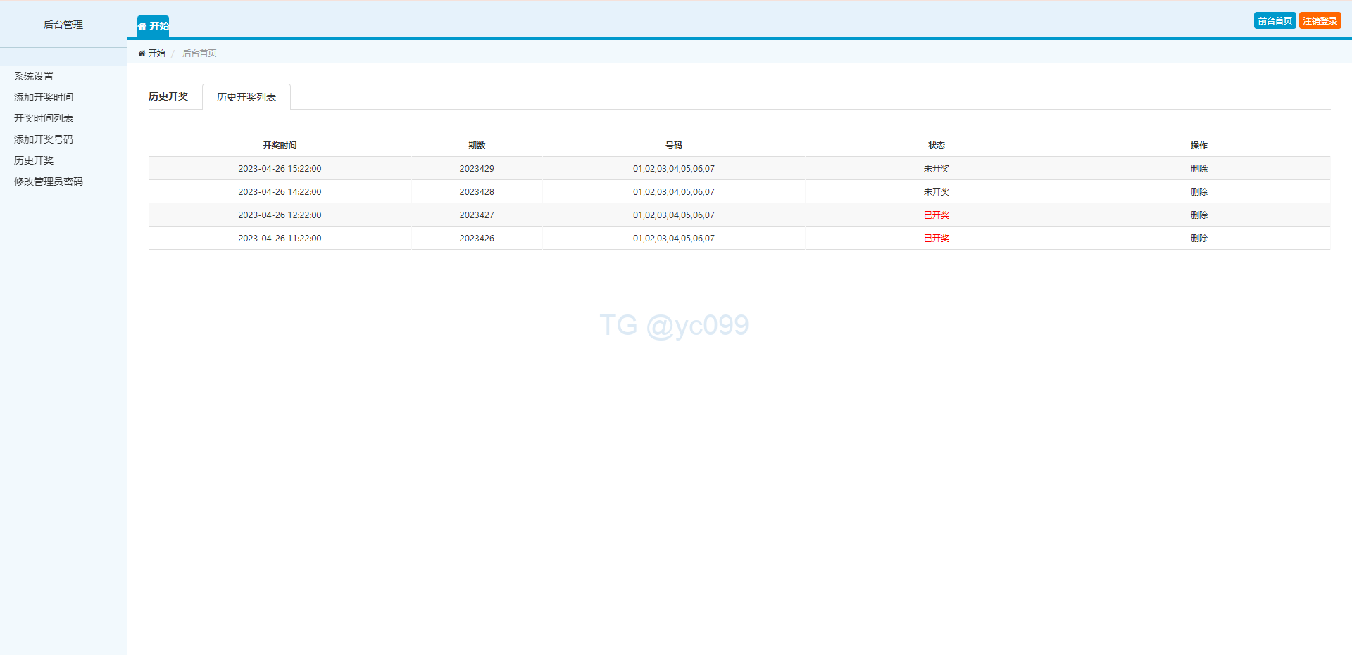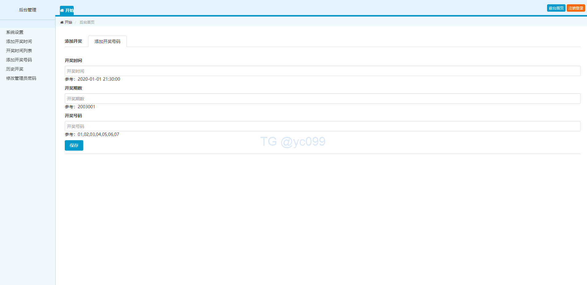 系统是澳门六合彩开奖网带开奖摇号视频,开奖的期数是自己后台手动添加的