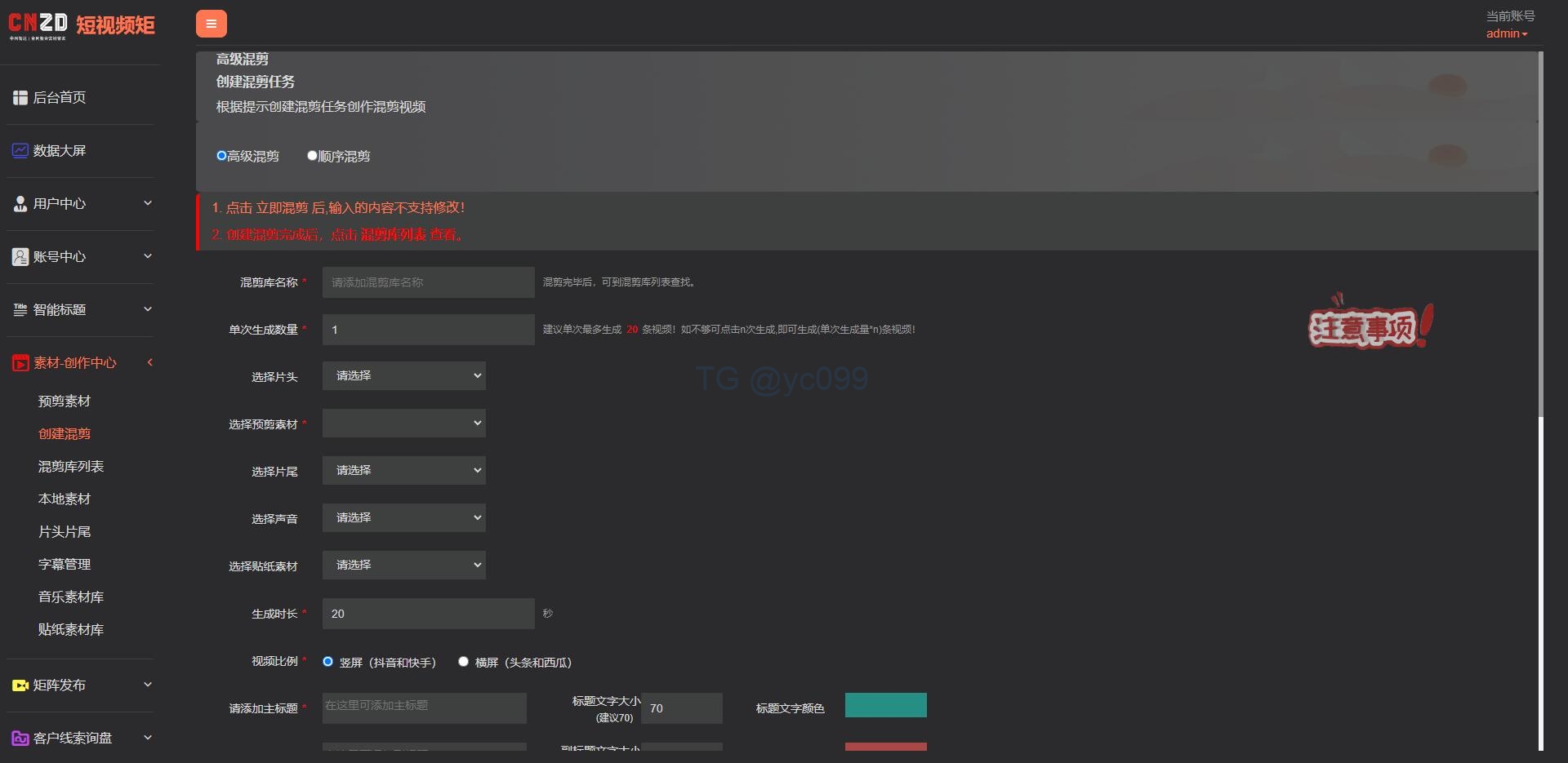 2、新增混剪字幕素材库管理;