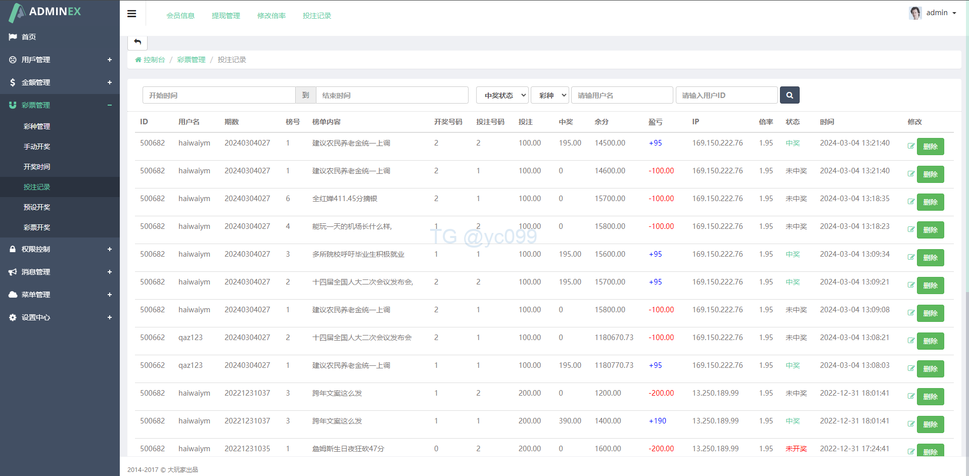 财神集团 博彩/综合盘/娱乐城 运营版抖音热门竞猜系统/竞猜下注/开奖预设/热门数据竞猜 抖音热门竞猜下注系统,热门对接付费api,接口正常使用 系统程序为php的thinkPHP框架开发,前端HTML的无任何加密 前台投注到时间需要后台手动开奖,带预设开奖