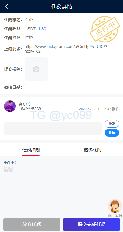 ②、领取任务,提交截图上传审核