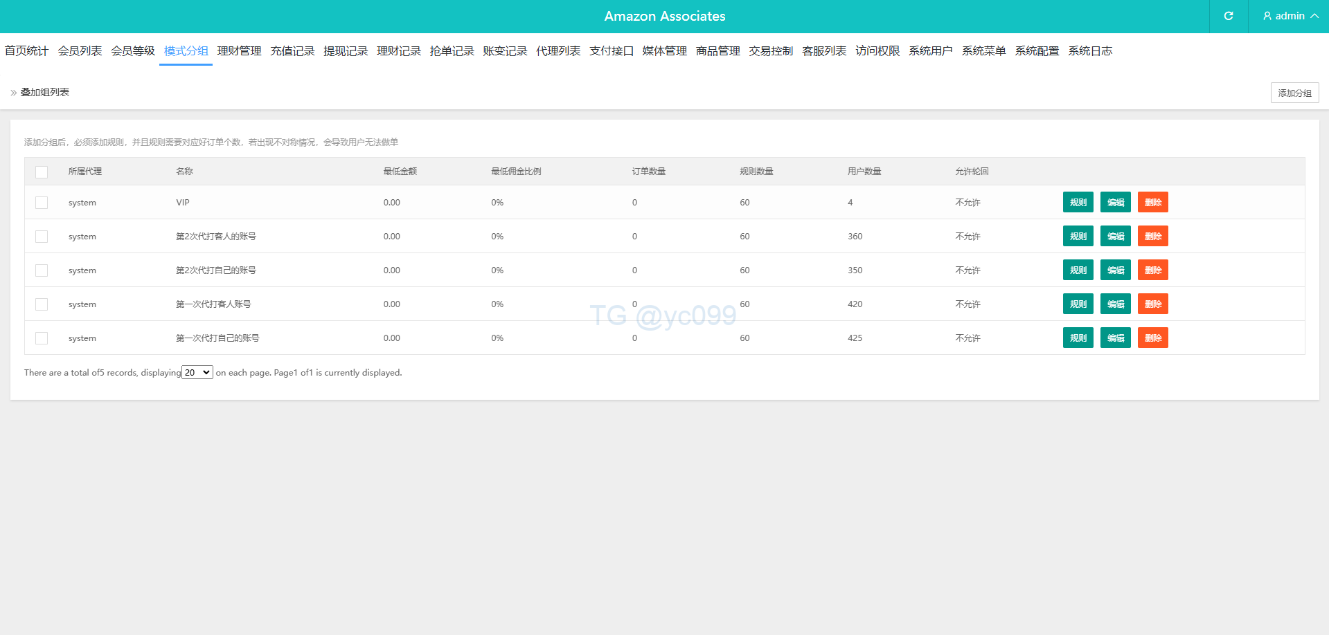 系统功能:支持分组,打针,做单,权限代理等功能