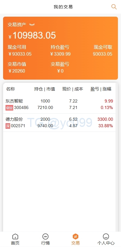 A股股票交易系统,支持新股认购,实名认证,T+1锁定转入出等功能