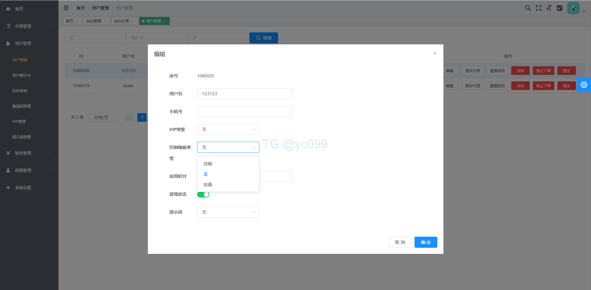 全局控,用户点控,用户提现有卡提现功能,设置提示语