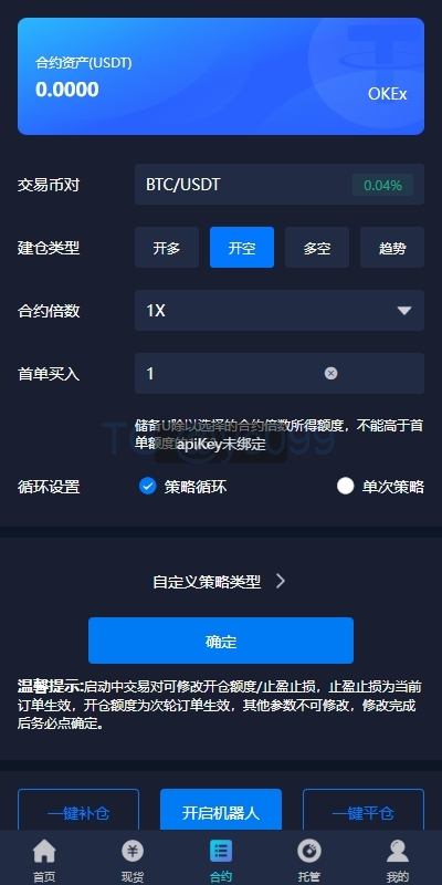 智能追踪止盈:设置触发条件,盈利条件比例达到之后,机器人自动触发追踪止盈。