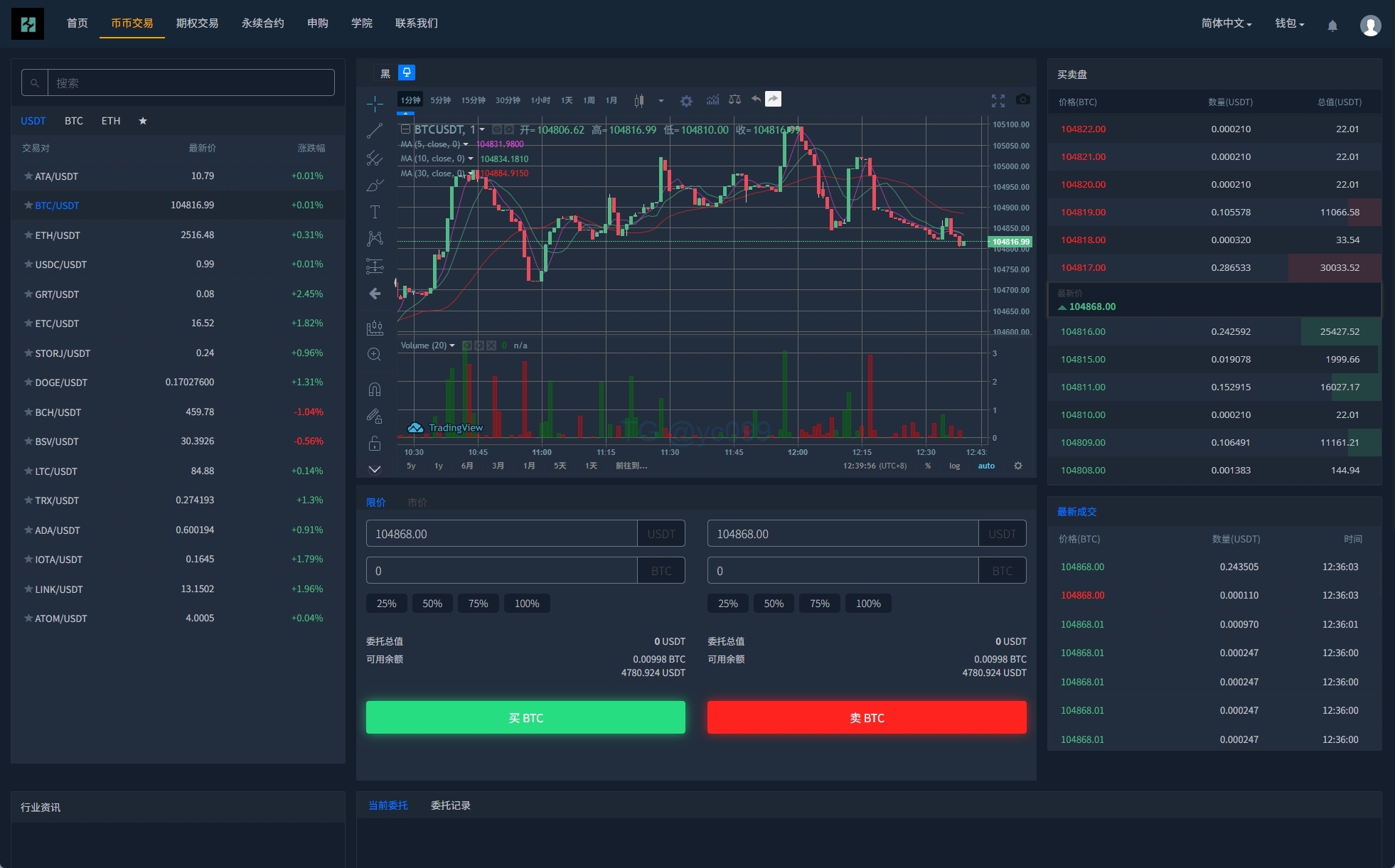 海外交易所系统/永续合约交割合约/K线控制/质押理财