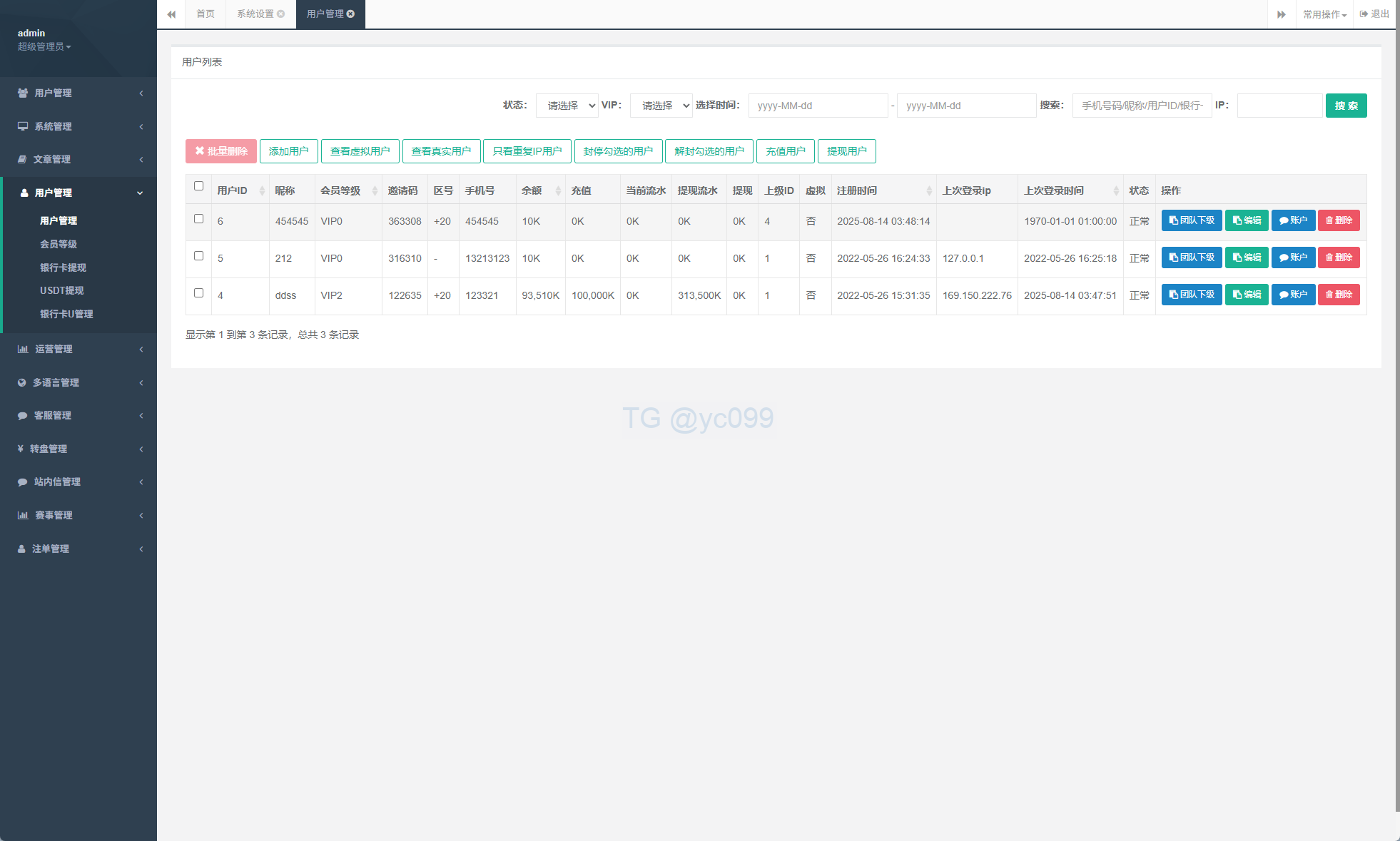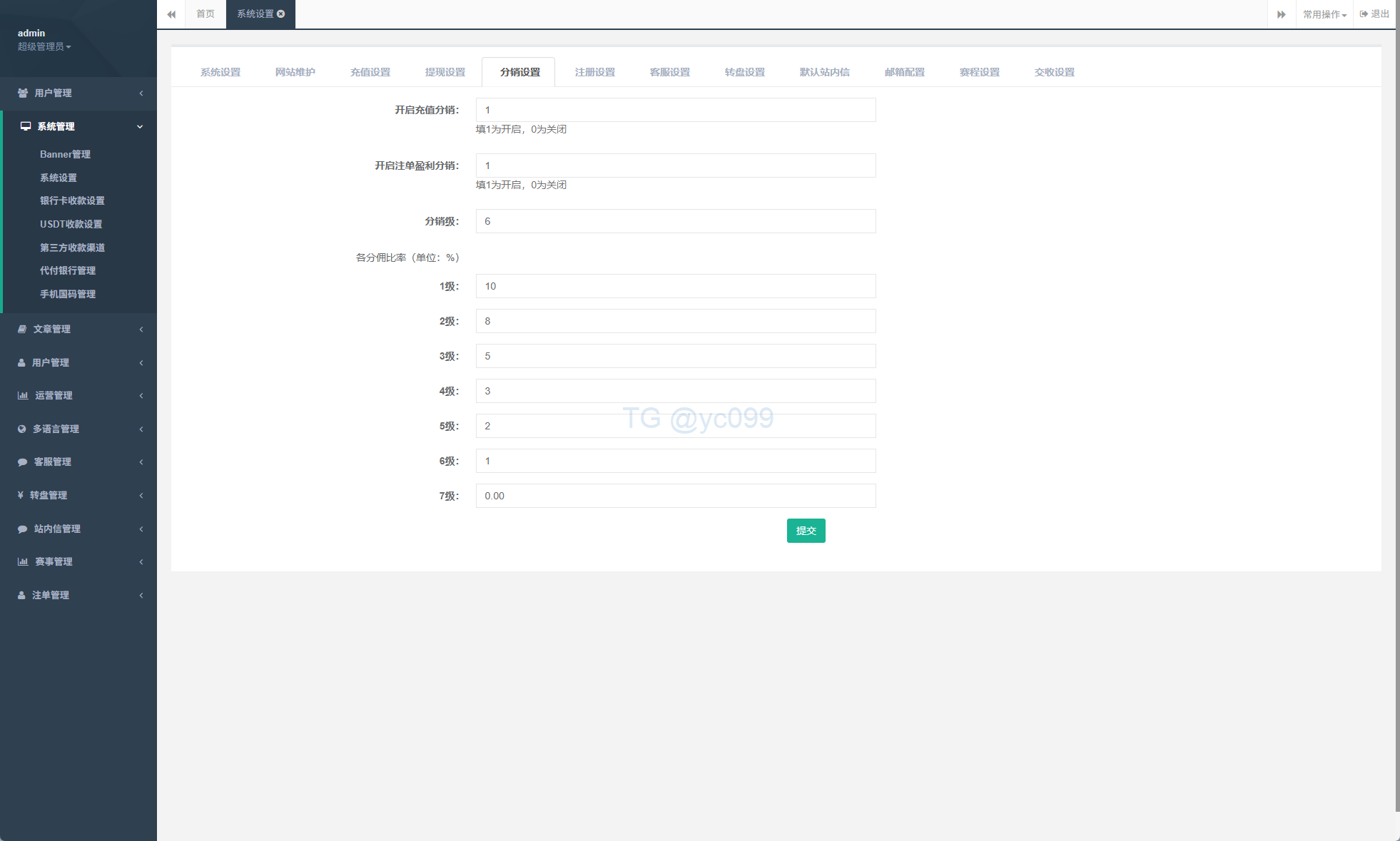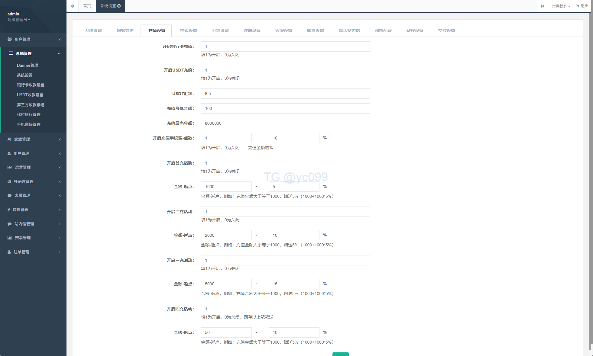 系统支持:充值返利、多级分销、usdt充值等功能
