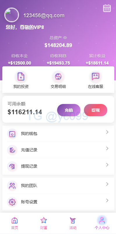 多语言投资理财系统/新能源投资返利/海外投资众筹系统
