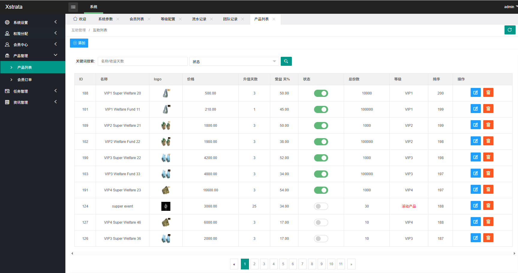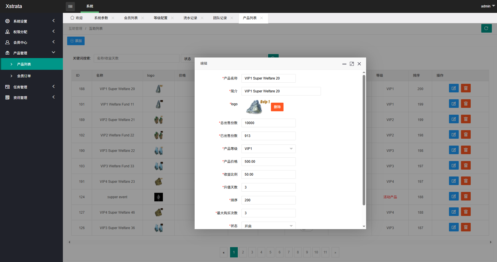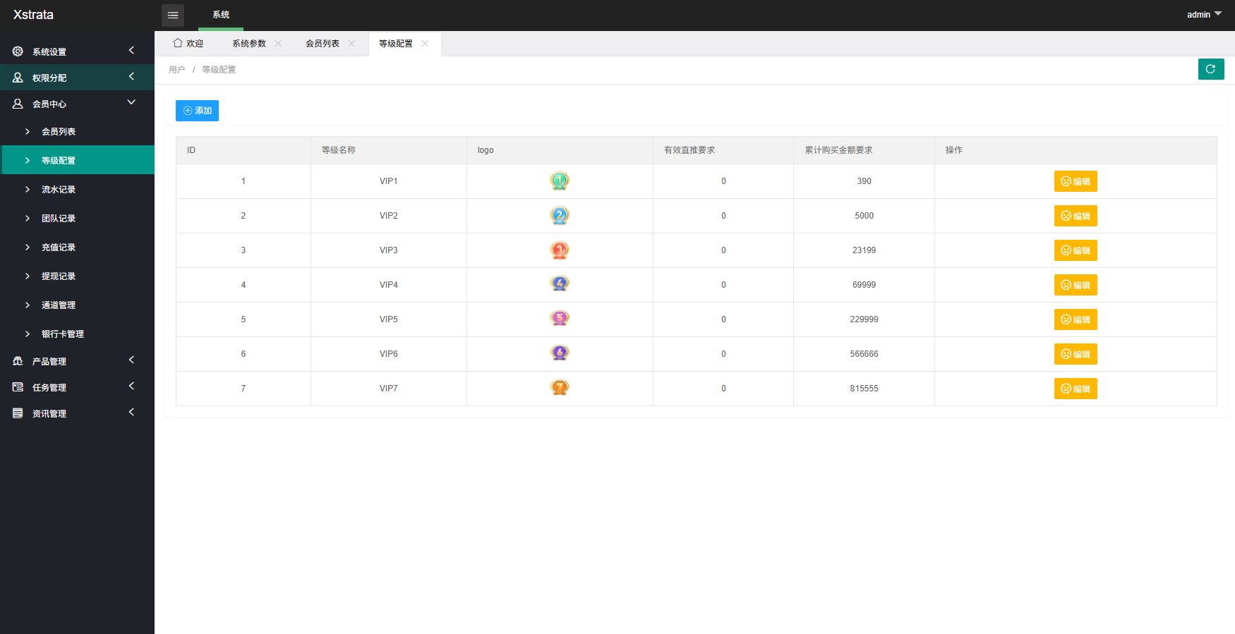支持多级分销推广,支持多VIP等级产品购买,推广任务等功能