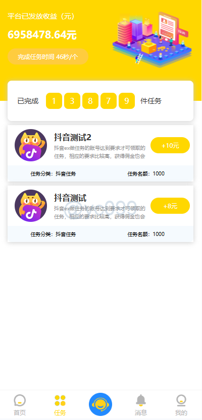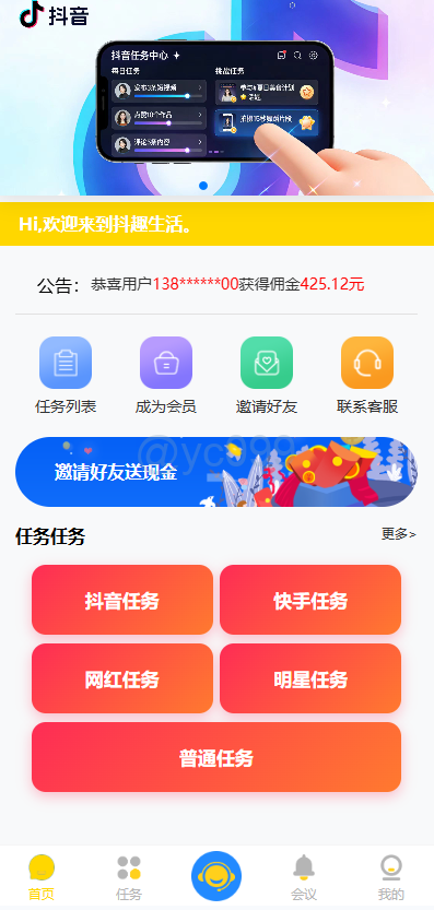 抖音/快手 点赞任务系统 可以加任意平台