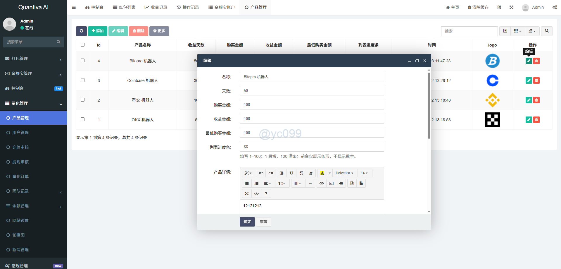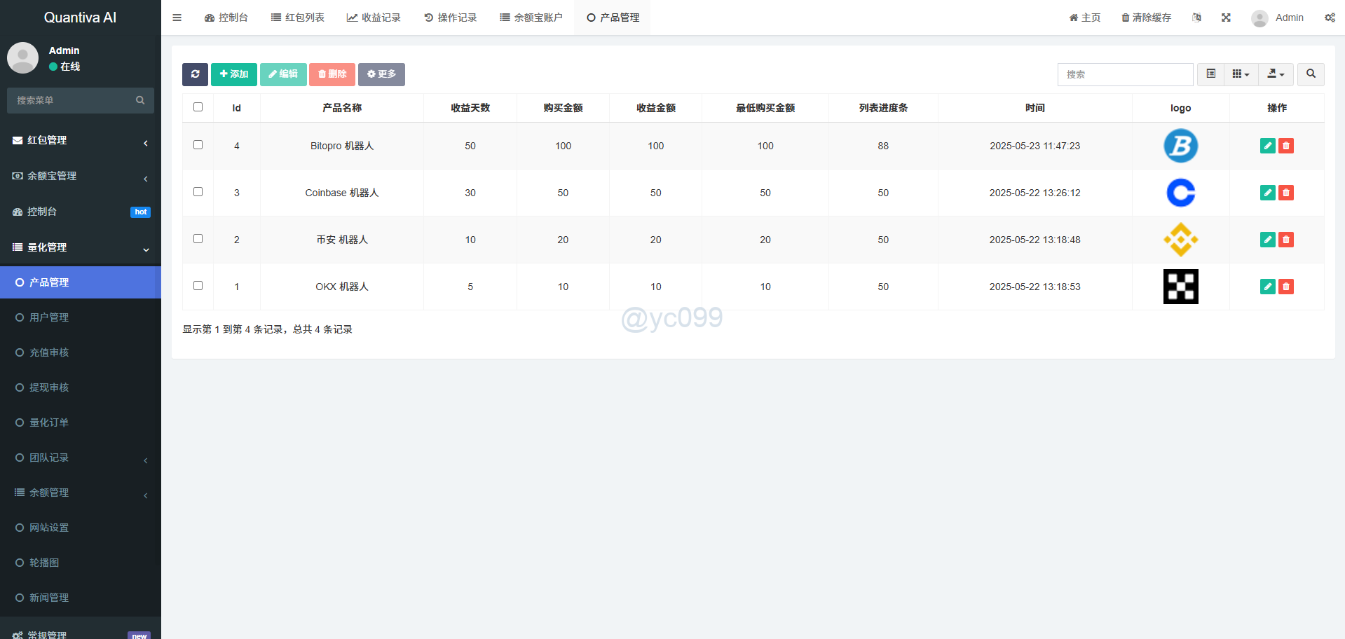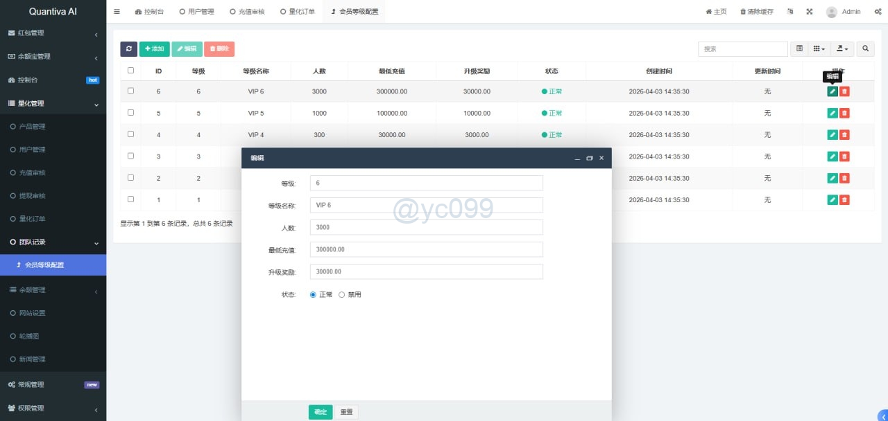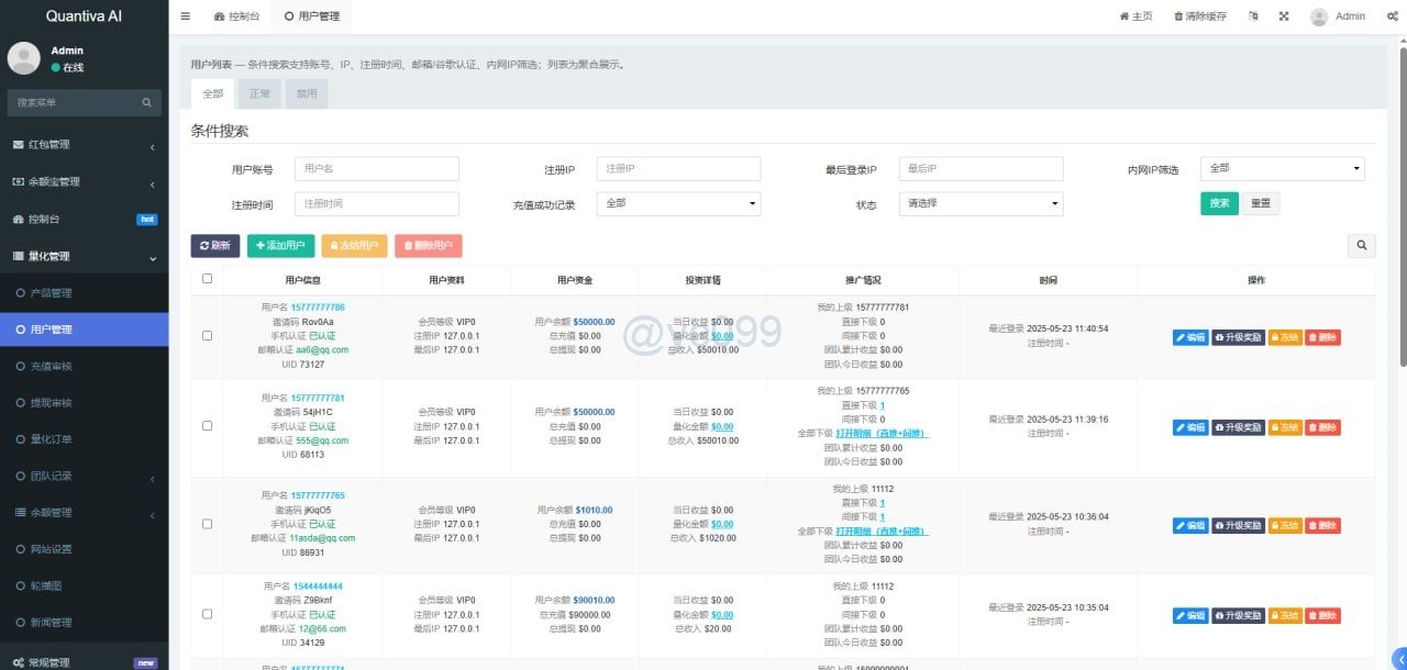 财神集团 资金盘/投资理财 AI量化投资/量化机器人/投资理财/量化理财系统 演示前台链接 http://ceshi.holdforlove.com 测试账号 11112 密码 123456 第一套前端UI 第二套前端UI 后端