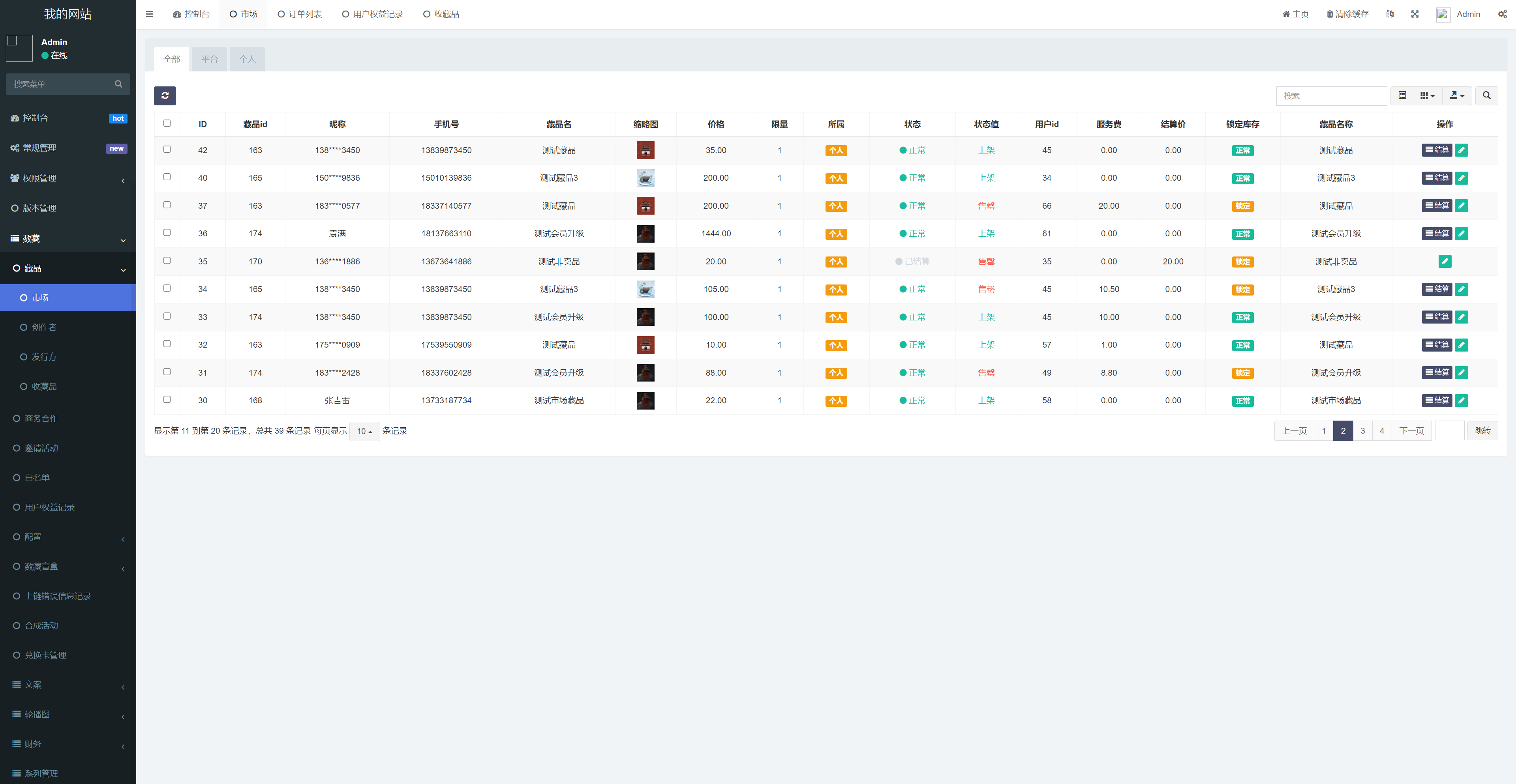 4.自由市场:用户的藏品可以直接挂售到市场自由交易