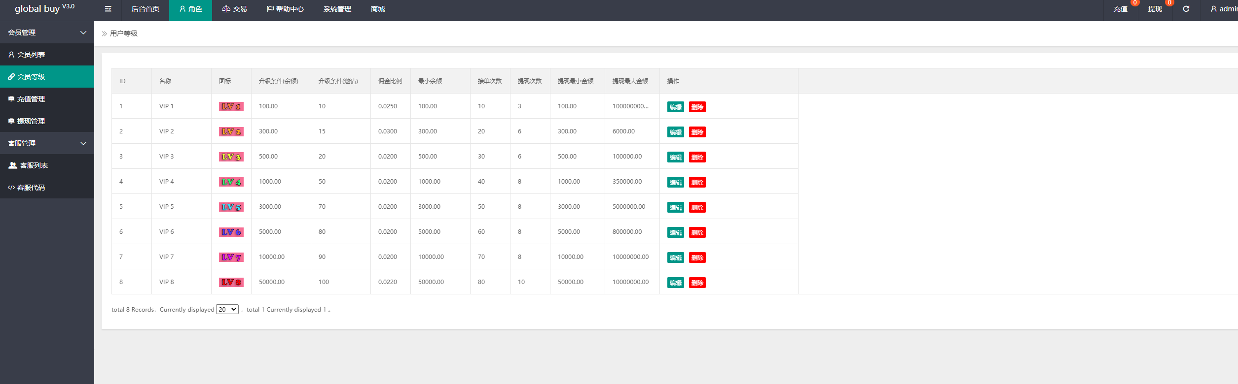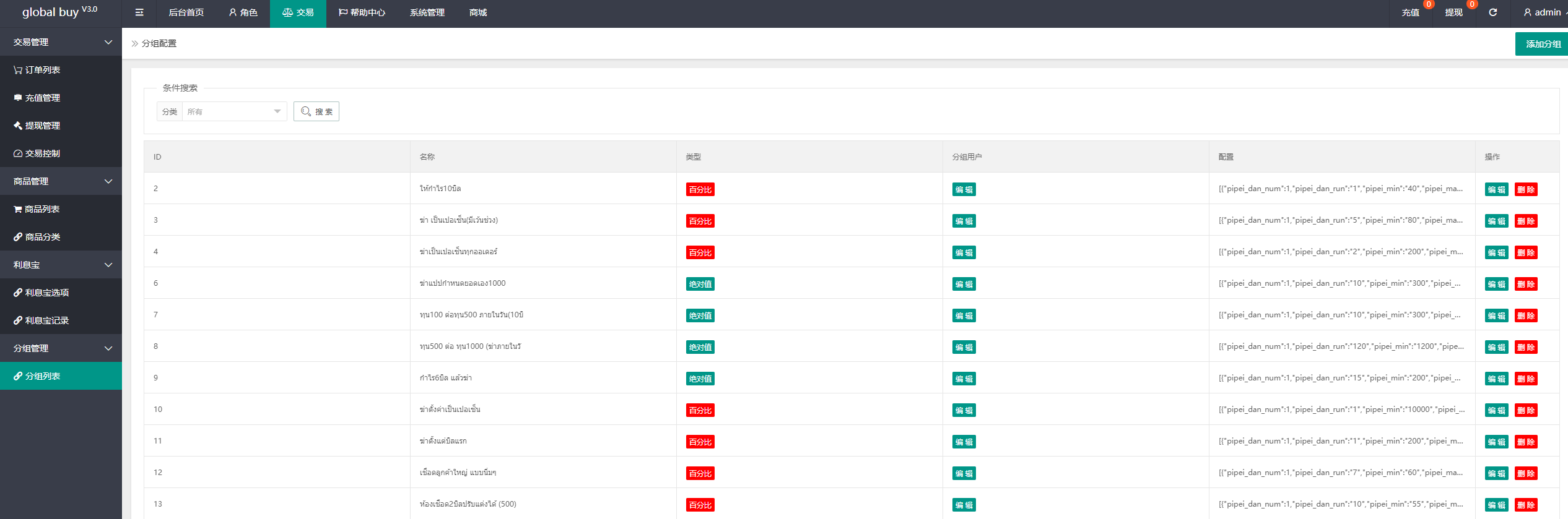 功能支持分组、百分比、固定值、连单设置、充值彩金等众多功能