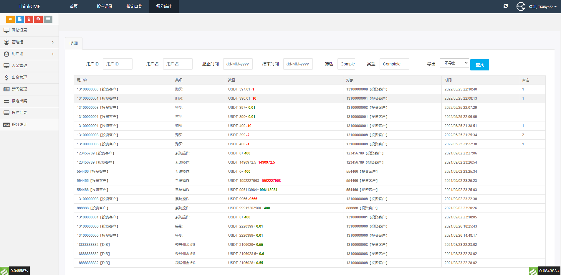 财神集团 外汇/交易所/微盘 【竞猜】白色区块链竞猜系统/虚拟币大小单双竞猜下注/USDT充值 系统为开源版,无任何加密,系统为双语言版 主要是虚拟币游戏下注竞猜的,后台支持控制开奖,需要海外服务器运行